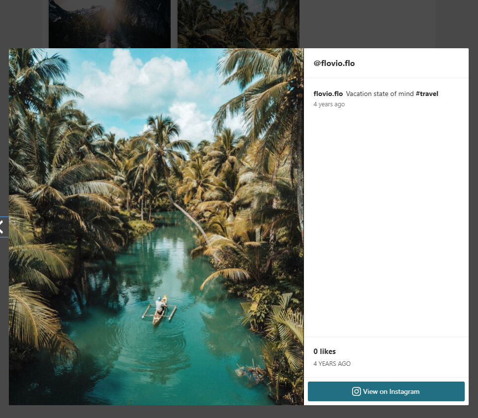 What it is: Spotlight’s lightbox feature opens Instagram photos and videos in a full-screen overlay, letting visitors browse your property in detail. Include video content for virtual room tours, restaurant walkthroughs, and amenity showcases without sending guests off your website to Instagram.